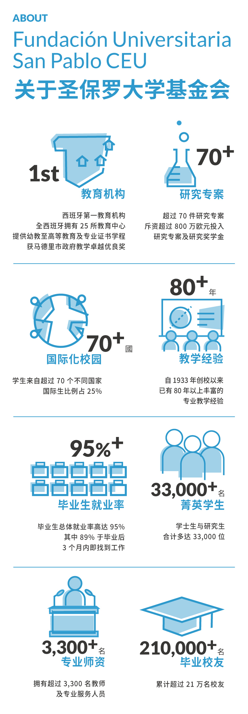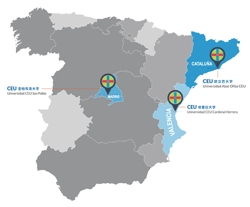 1933 年,天主教主宣会第一主教—安赫尔•埃雷拉奥里亚在马德里创办了非营利法人机构 EI CEU 大学教育中心 (Centro de Estudios Universitarios CEU),经过持续不断的努力,陆续开办各项不同层级的教育课程。1945年,CEU 获得西班牙教育部官方认可,成为附属于马德里大学的教育中心,并于 1972 年正名为圣保罗大学基金会( San Pablo Foundation)。80年代晚期,西班牙佛朗哥极权专政时代结束,政府开始开放私立大学立案, CEU 依私校法于1993 年正式在马德里 (Madrid)设立辖下第一所独立大学 San Pablo University-CEU ,实现了创办人埃雷拉奥里亚主教一直以来的梦想,之后陆续于瓦伦西亚、巴塞隆纳等西班牙主要城市增设独立大学。