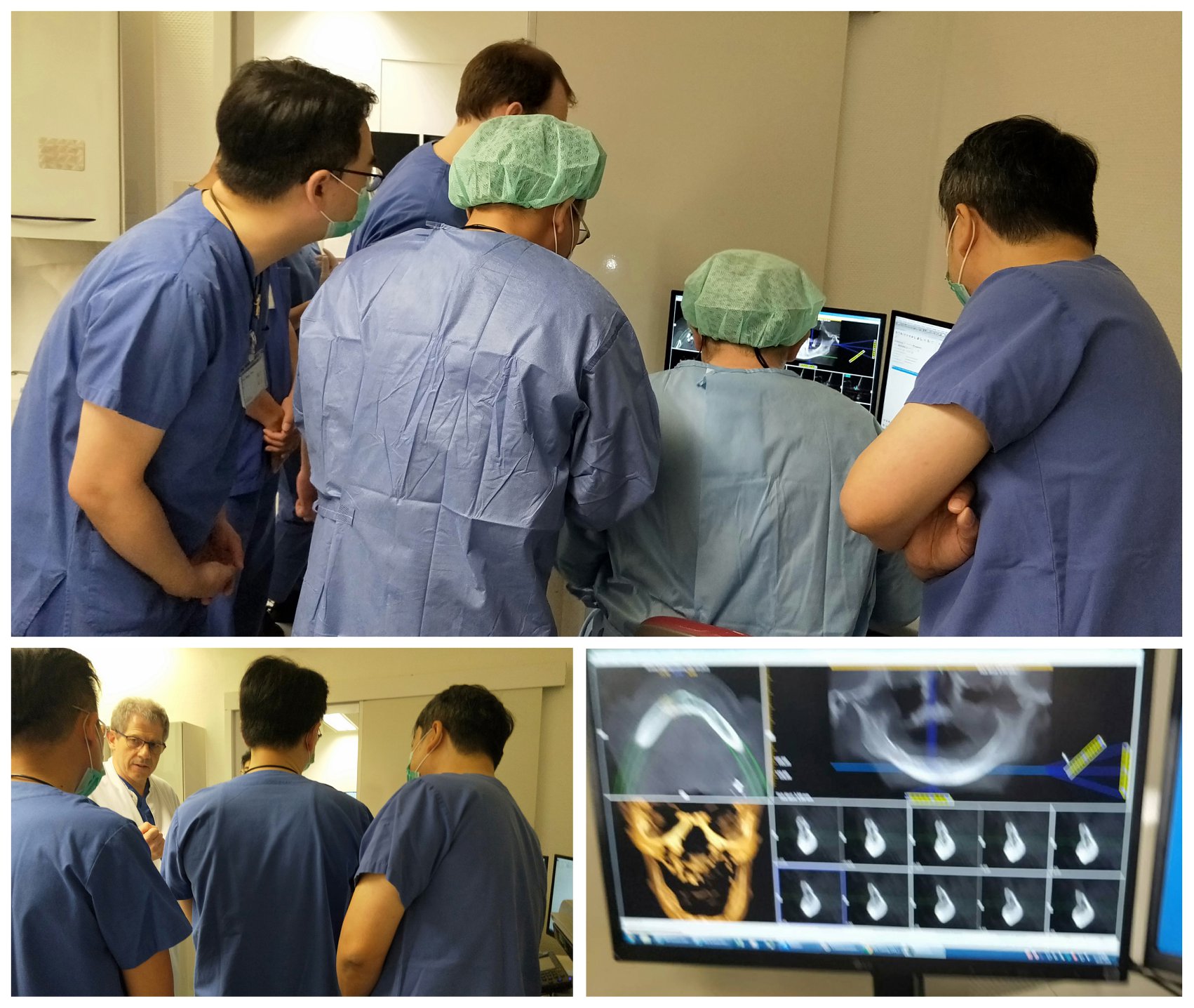 第四届 IMC-GEC 种植牙口外硕士班第一组学员于 1 月 27-28 日在德国卡尔斯鲁厄市立医院颅颚面外科中心进行临床实作,由颅颚面外科中心主任 Prof. Dr . med. Dr. (H) Anton Dunsche 及口腔外科助理医师 Dr. Florian Schäfer 指导下共完成了 1 台 6 个月大幼儿唇颚裂⼿术及 16 位门诊病患的咨询与治疗。