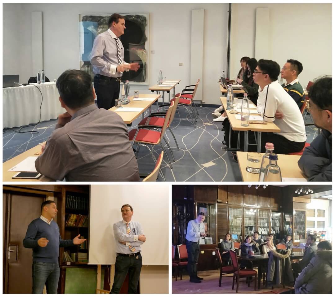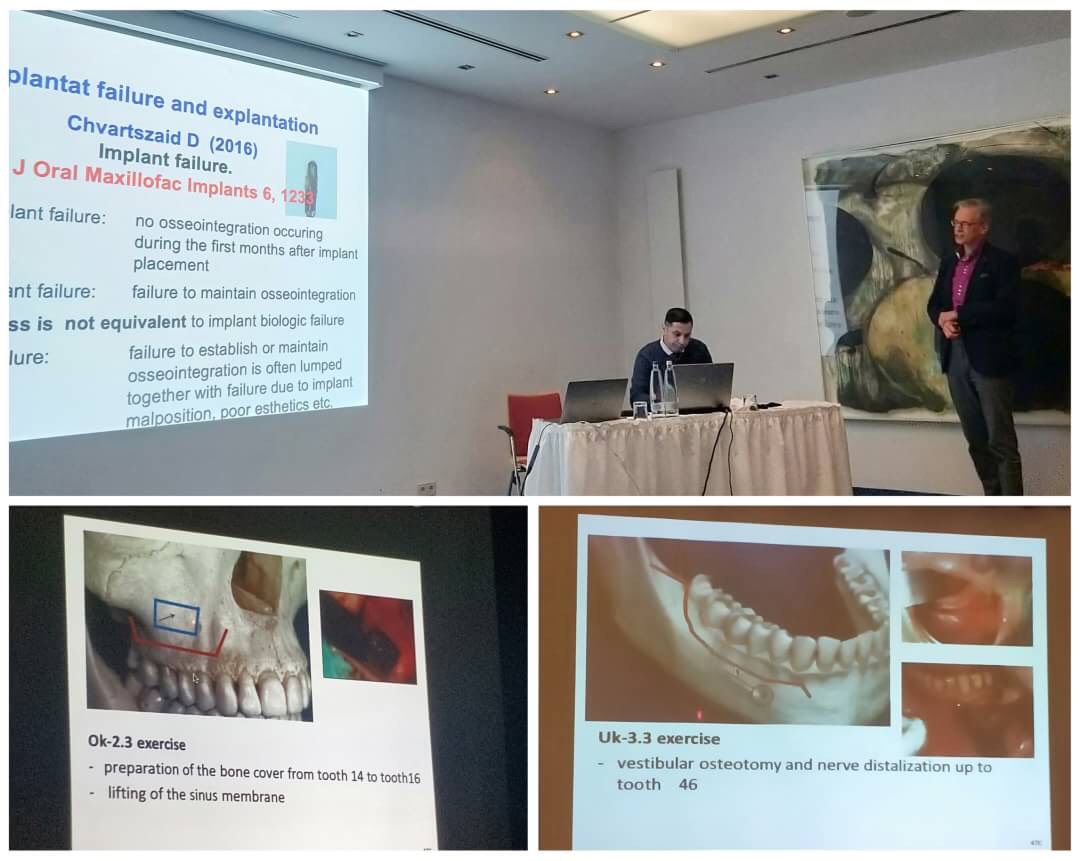 学员首先参加由匈牙利塞革德大学教学医院医疗主任暨口腔颚面外科主任 Univ.-Prof. Dr. med. Dr. med. dent. József Piffkó 、德国埃森米特医院植牙中心主任 Prof. Dr . med. dent. Thomas Weischer 及德国颅颚面外科及口腔外科专科医师 Dr. med. Ahmad Qasem 指导的种植牙讲座培训,课程内容包含:种植牙计画及切口位置、软组织处理、骨增生、组织损坏病患之种植牙、数位导航系统在种植牙及口腔颚面手术的应用等。