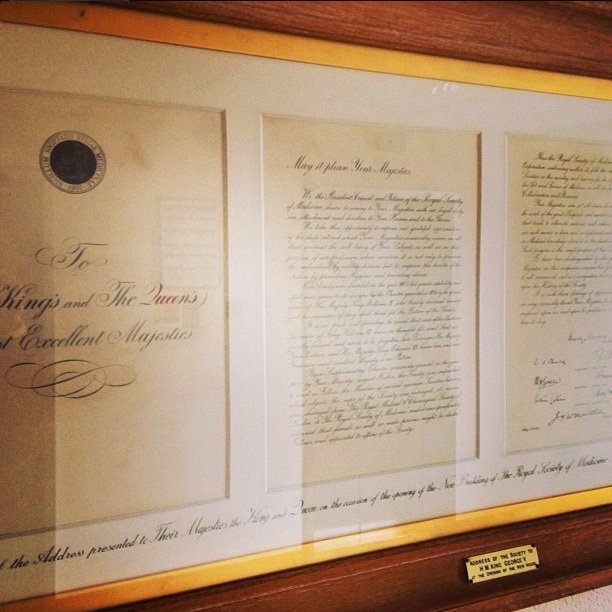 1912年,英國國王喬治五世(King George V)對英國皇家醫學會搬遷至1 Wimpole Street的開幕慶賀信函手稿。